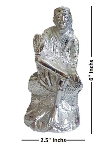 White Metal Sai Baba Silver, Showpiece (6" Inch)