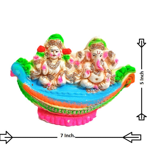 Lakshmi Ganesha Idol of Clay (Mitti) - Sat on Parrot boat_Size 5 Inch