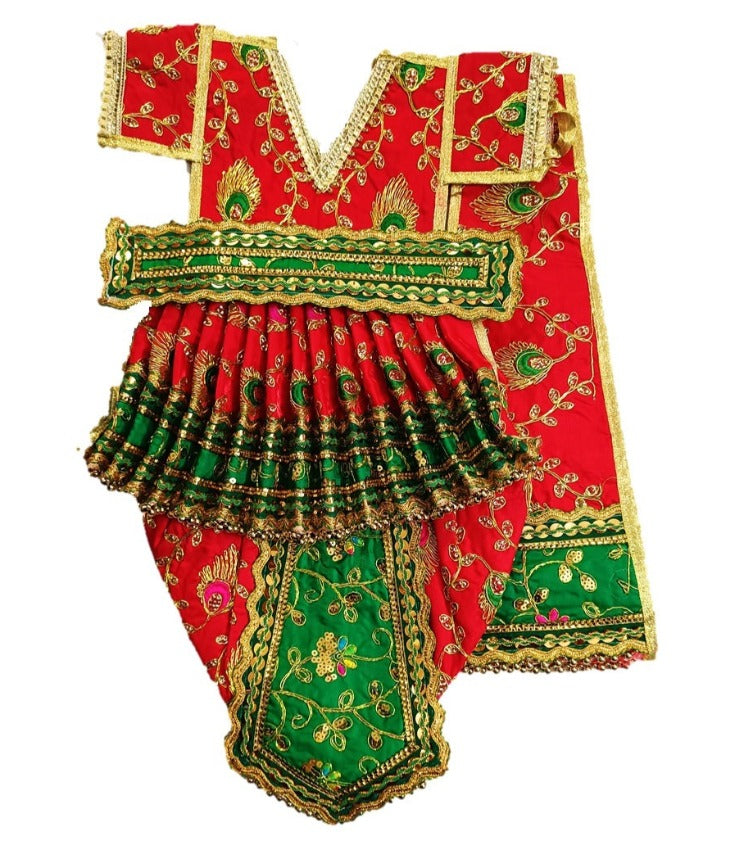 • Krishna: Dhoti: 15",+ Lehenga: 8" Inch's,  Patka: 38", Belt; 12" Inch's and Anng Vastra/Shirt: 9" (Inch's) .