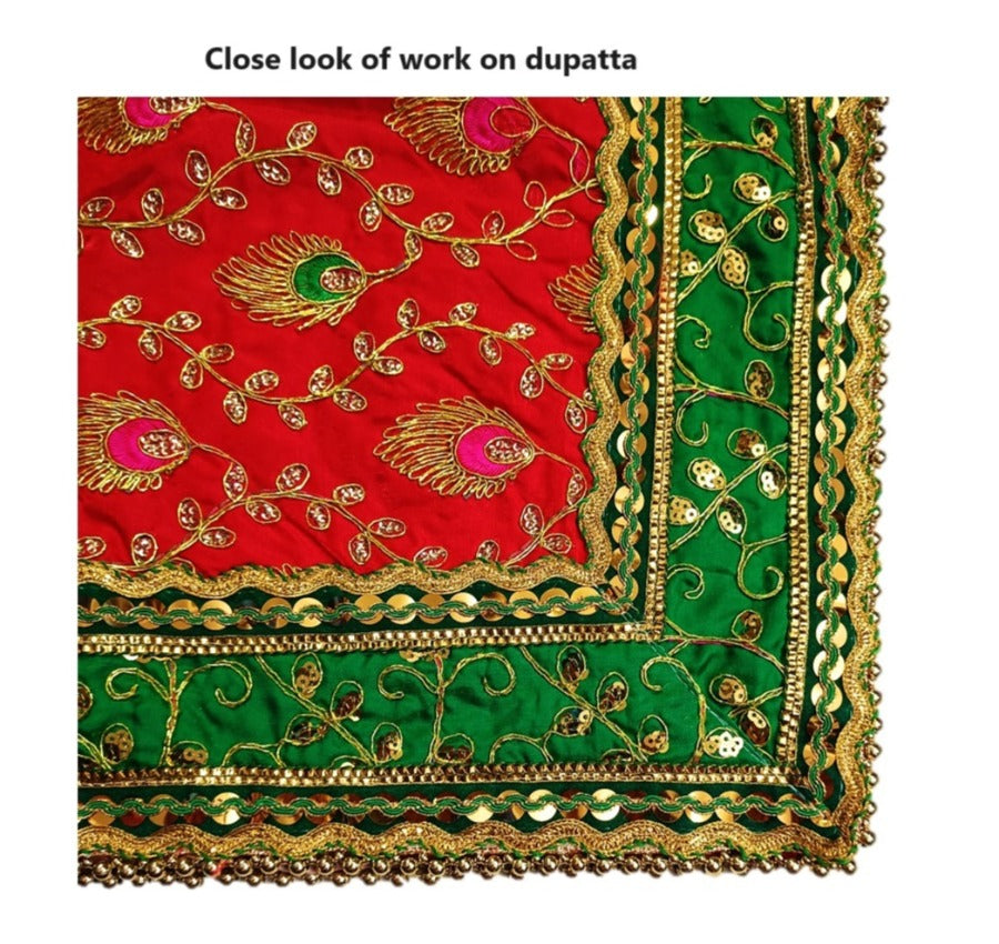 • Radha: Lehenga: 15" Inch's., Dupatta: 15" X 36" Inch's, Belt : 12" inch's Choli; 9" Inch's.