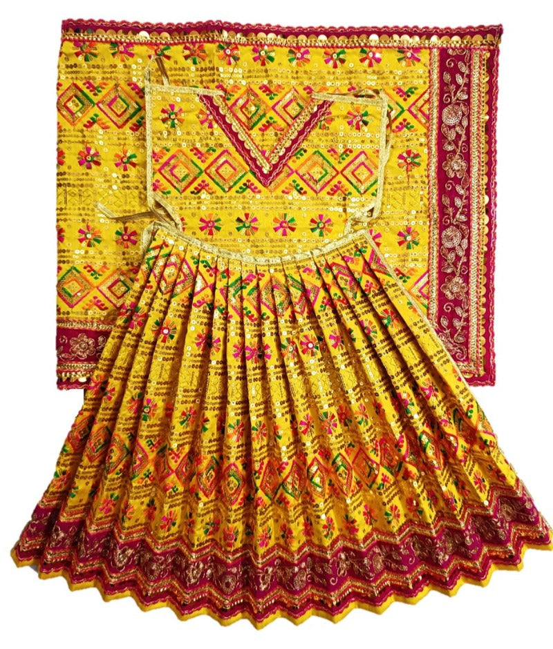 - Radha: Lehenga: 15" Inch's, Dupatta: 15" X 37" Inchs, Choli; 8.5" Inch's.