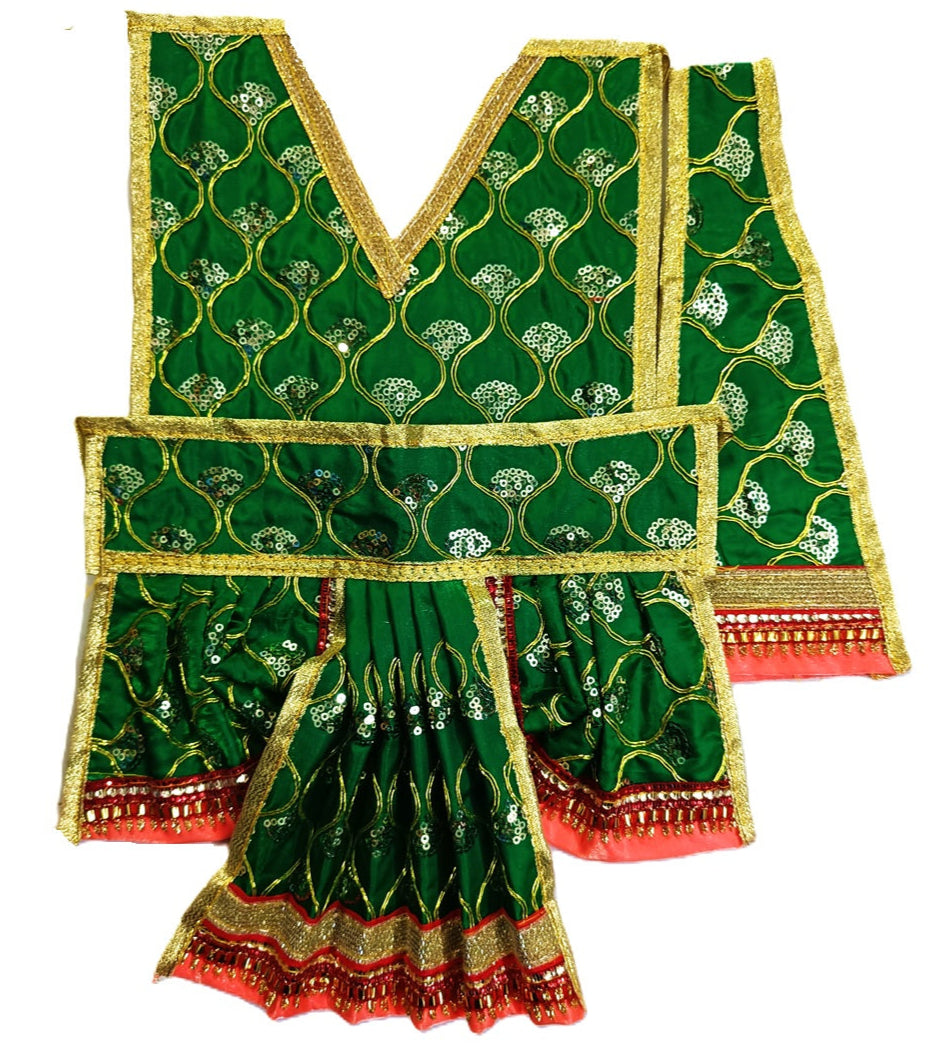 Mata Sita Dress Specification: a Lehenga of 21", A Dupatta of 18" (l) x 50"(w), and Blouse of 13"Approx.