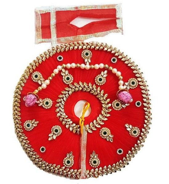 - The border of the dress set decorated with golden plastic leaf design that gives attractive look to this laddu gopal dress.
