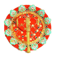 - The dress set decorated with fancy colorful stones that gives attractive look to this laddu Gopal Poshak.