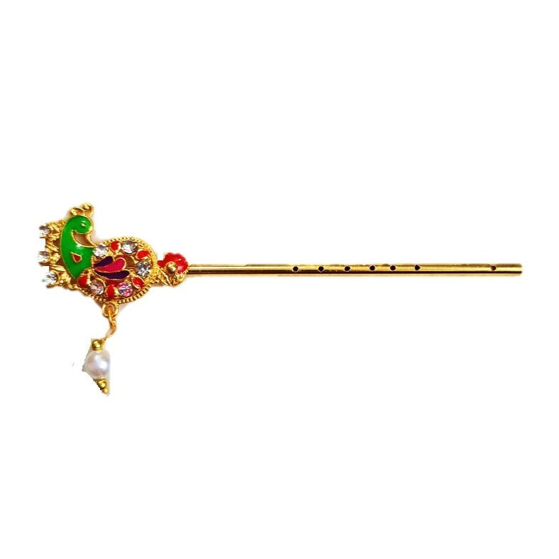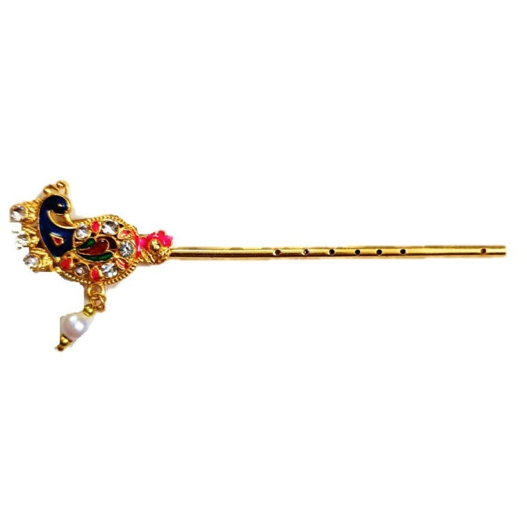- Decorative Designer Basuri, Flute studded with a fancy diamond stone, for Lord Krishna