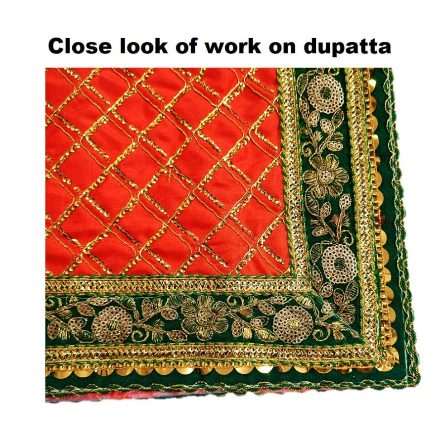 - Radha: Lehenga: 15" Inchs., Dupatta: 15" X 37" Inchs, Choli; 8" Inch's.