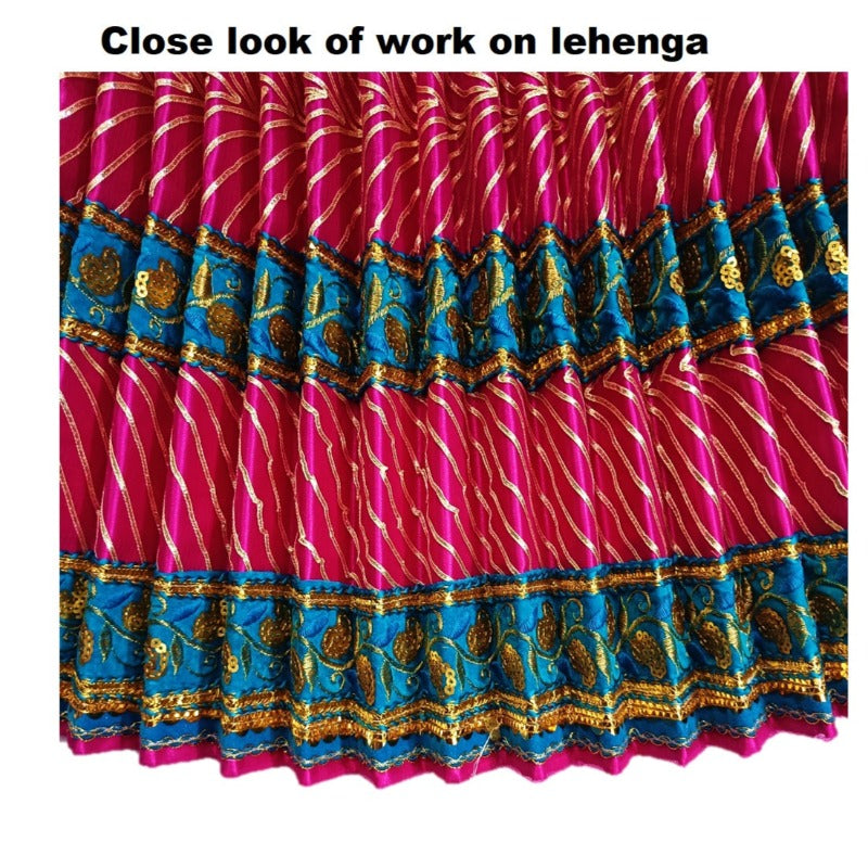- Radha: Lehenga: 21" Inchs., Dupatta: 21" X 51" Inchs, Choli; 12" Inchs.