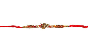• This rakhi decorated with fancy stones and plastic beads that give attractive look to this rakhi.