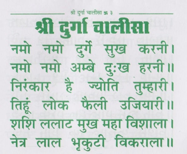 Shri Durga Chalisa (श्री दुर्गा चालीसा)- Letter in green colour